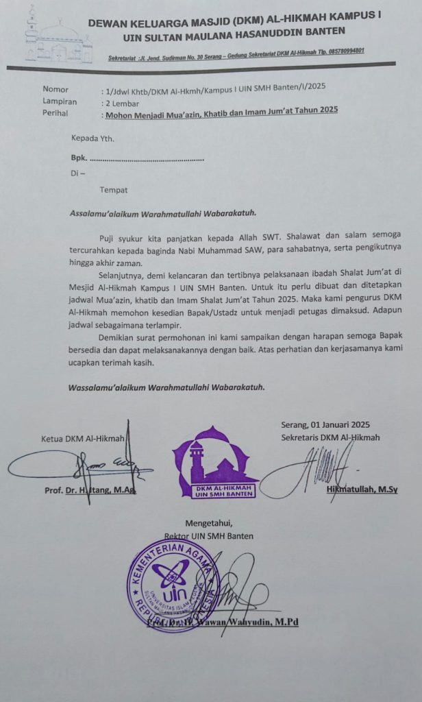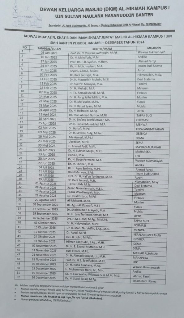 Pemateri Kajian Shubuh 2024-2025 – Masjid Assalam UIN SMH Banten